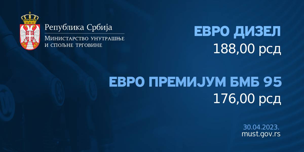 Ускладу са чланом 3. став 4. Уредбе о ограничењу висине цена деривата нафте („Сл. гласник РС“, бр. 8/2025), утврђује се највиша малопродајна цена деривата нафте за период од 15 часова 30. априла 2025. године до 09. маја 2025. године, и то за: