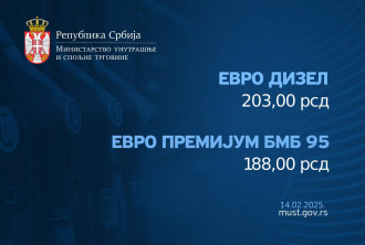 ОБАВЕШТЕЊЕ О НАЈВИШОЈ МАЛОПРОДАЈНОЈ ЦЕНИ ДЕРИВАТА НАФТЕ EVRO DIZEL И EVRO PREMIJUM BMB 95